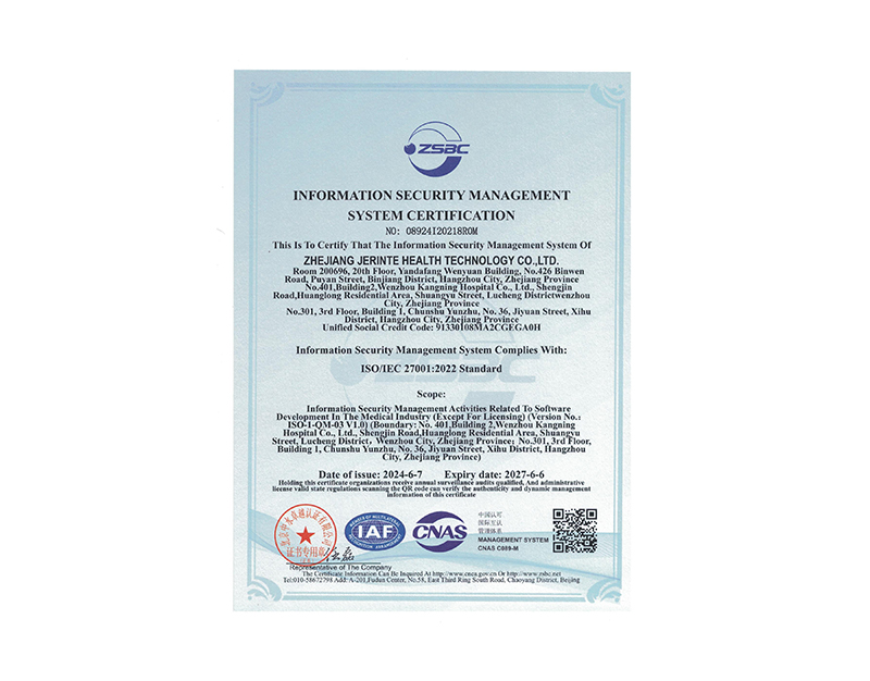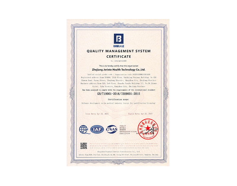 公司成功获得CMMI3 、 ISO9001 、 ISO27001、ITSS等质量认证;并于同年 10 月更名为浙江杰翎健康科技有限公司。